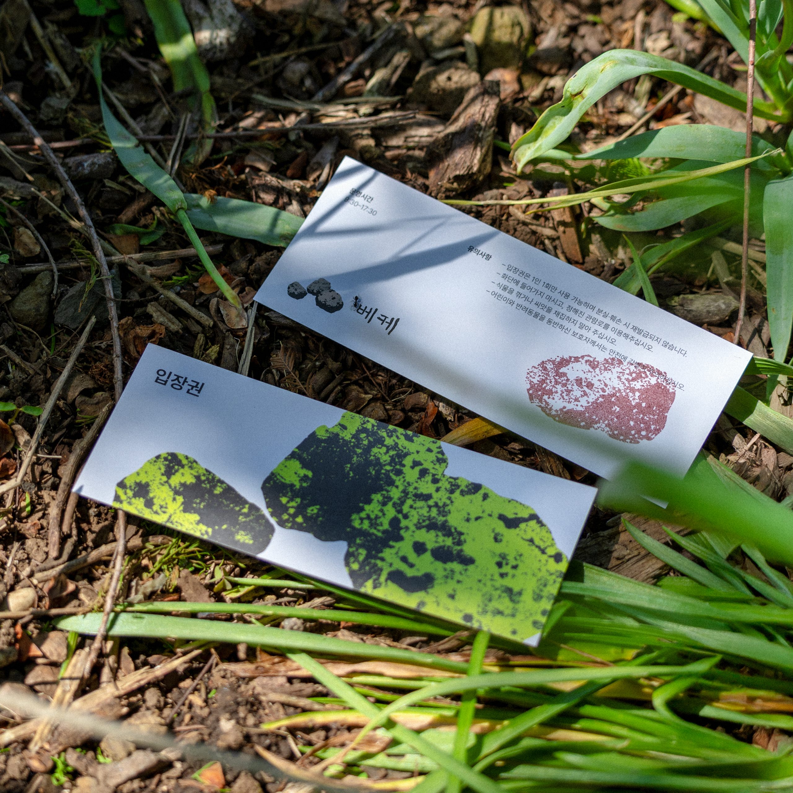 Veke is a naturalistic garden in Jeju. Chuigraf developed its brand identity by drawing from the site’s history and the Jeju dialect word “Veke,” which refers to a rough heap of stones marking the edge of a field. Once a tangerine orchard, the site still holds traces of these stone mounds. Inspired by this, Chuigraf designed a symbol reflecting stones, stone walls, and natural forms. The wordmark reinterprets the shape of the original driftwood sign. Brand collateral — including signage and printed materials — was kept minimal to blend naturally with the ever-changing beauty of Veke.