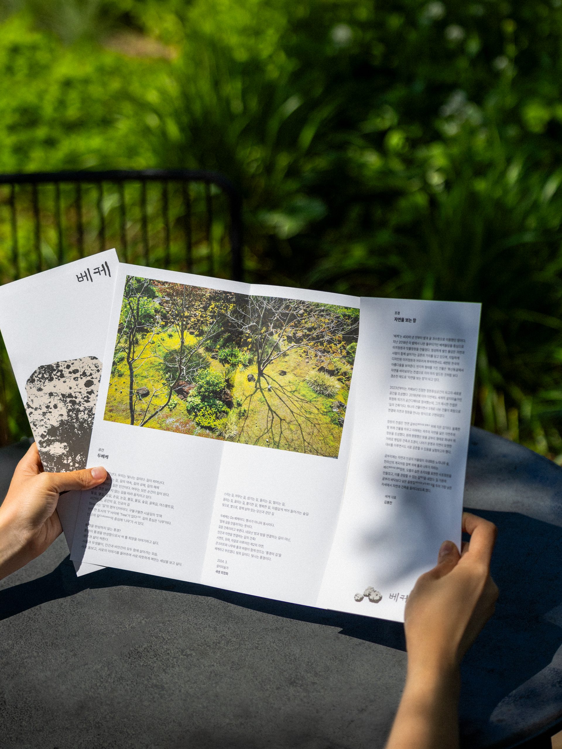 ‘베케(Veke)’는 제주도에 자리한 자연주의 정원입니다. 취그라프는 이곳의 역사와 제주 방언에서 유래한 이름에서 영감을 받아 브랜드 아이덴티티를 디자인했습니다. ‘베케’는 밭의 경계에 아무렇게나 두텁게 쌓아놓은 돌무더기를 뜻하는 제주 방언에서 유래한 이름입니다. 원래 감귤 농장이었던 이곳에는 돌담처럼 보이는 돌무더기, 즉 베케의 흔적이 남아 있습니다. 취그라프는 이 이름의 의미를 살려, 돌과 돌담, 그리고 자연스러움을 모티프로 심벌을 디자인했습니다. 바다에 떠다니던 나무를 주워 만든 기존 간판의 형태를 다듬어 워드마크로 완성했으며, 사이니지와 애플리케이션은 최대한 단순하게 디자인하여, 계절과 시간에 따라 다양한 빛깔을 띠는 베케의 아름다움에 자연스럽게 스며들도록 했습니다.